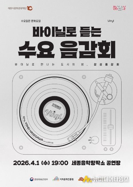 그 시작을 알리는 특별 프로그램 ‘바이닐로 듣는 수요 음감회’는 4월 1일 오후 7시, 세종음악창작소 누리락 공연장에서 열린다.