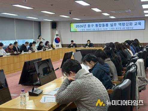 동구는 지난 25일 동구청 대회의실에서 12개 동 행정복지센터 사무장 및 담당자, 민간 서비스 제공기관 관계자 등을 대상으로 ‘2026년 동구 통합돌봄 실무 역량 강화 교육’을 실시하며 현장 대응력을 선제적으로 높였다.