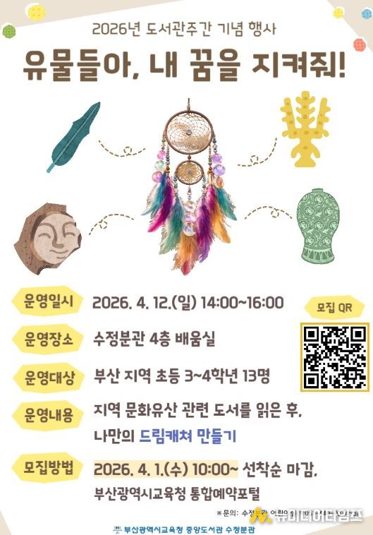 부산광역시립중앙도서관은 오는 4월 12일 중앙도서관 수정분관에서 초등학생 3~4학년 13명을 대상으로 도서관주간 기념행사 ‘유물들아, 내 꿈을 지켜줘!’를 운영한다.