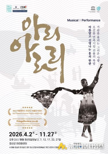 정선군이 지역 대표 공연 콘텐츠인 뮤지컬 퍼포먼스 ‘아리아라리’와 ‘뗏꾼’의 상설공연을 본격 운영하며 문화관광 활성화에 나선다.