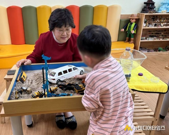 '마음 케어 시스템'은 모래놀이치료 프로그램을 기반으로 유아의 발달 특성과 개별적 요구를 반영하여 전문상담사가 맞춤형 상담을 제공하는 사업이다.