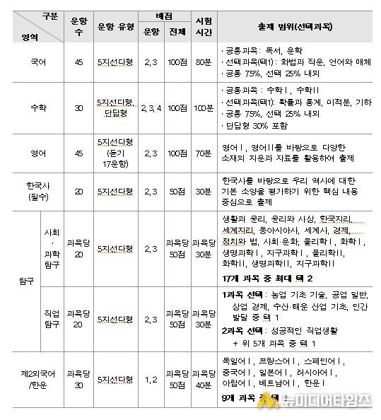 5. 국어와 영어 영역은 출제 범위를 바탕으로 다양한 소재의 지문과 자료를 활용하여 출제함.