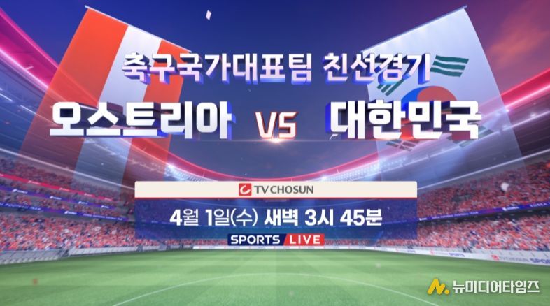 '대한민국 축구대표팀 경기 주관 방송사'인 TV CHOSUN이 4월 1일(수) 새벽 3시 45분부터 축구 국가대표팀 친선경기 '대한민국 vs 오스트리아'를 생중계한다.