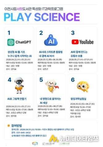 이천시립서희도서관은 시민의 디지털 역량 강화와 미래 기술 이해를 돕기 위한 특성화 프로그램 ‘PLAY SCIENCE’를 운영한다. 이번 프로그램은 인공지능(AI) 기술이 일상 전반으로 확산되는 시대 흐름에 발맞춰, 인공지능(AI) 활용 교육과 과학체험 프로그램으로 구성됐다.