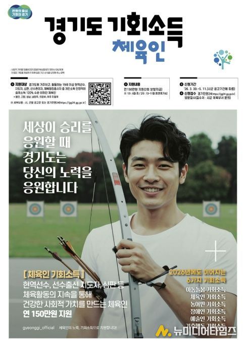 시 관계자는 “체육인 기회소득은 체육인의 직업적 권리를 두텁게 보호하기 위해 지속적인 활동을 지원하는 사업”이라며 “스포츠가 가진 공익적 가치가 우리 사회 전반에 선순환 되길 기대한다”고 밝혔다.