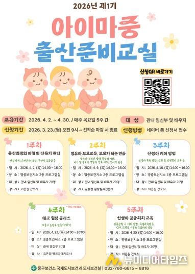 인천시 중구는 관내 임산부와 배우자를 대상으로 건강한 출산과 안정적인 육아 준비를 돕기 위한 ‘2026년 제1기 아이마중 출산준비교실’을 운영한다.