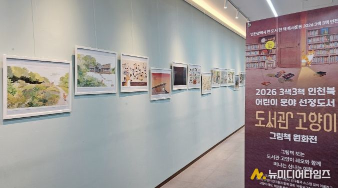 인천광역시교육청신트리도서관은 인천도서관이 추진하는 '2026 3색3책 인천북 ‘도서관 고양이’ 원화 순회전시' 공모 사업에 선정되어, 오는 4월 1일부터 26일까지 원화 전시를 운영한다.