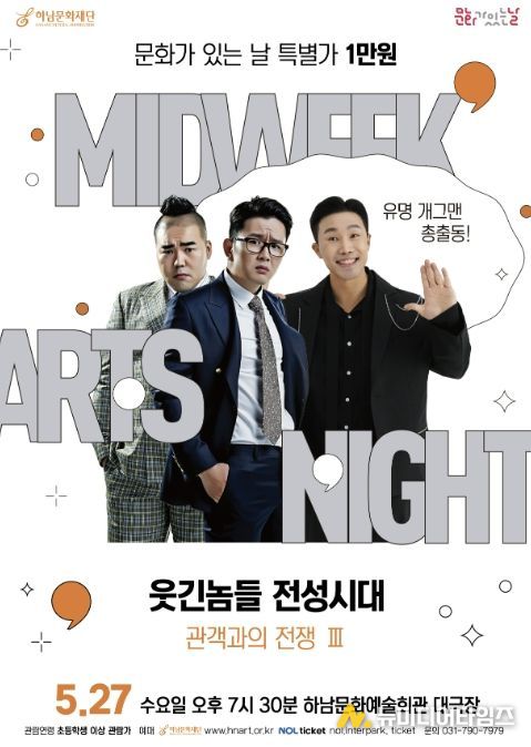 하남문화재단은 오는 2026년 5월 27일 오후 7시 30분, 하남문화예술회관 대극장에서 ‘문화가 있는 날’ 기획공연으로 '웃긴놈들 전성시대, 관객과의 전쟁 Ⅲ'를 선보인다.