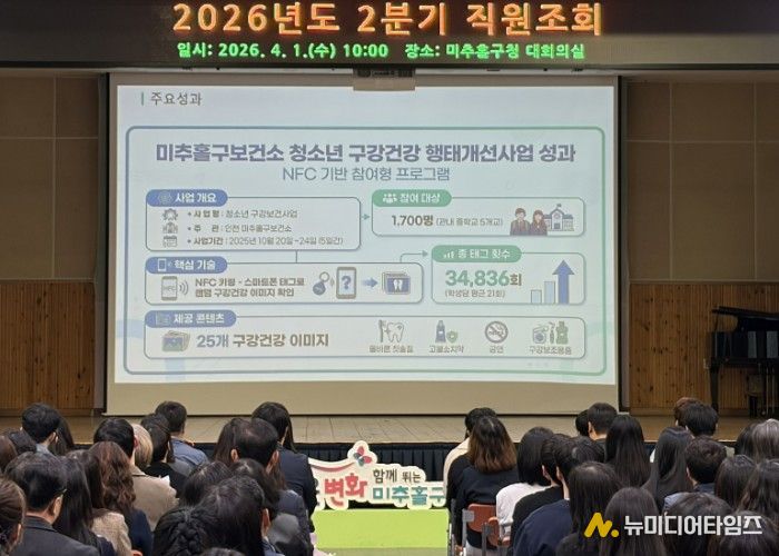 이날 발표회에서는 우수사례로 선정된 ‘일상에 스며드는 스마트 건강 행정, 알파 세대 맞춤 구강보건사업’이 소개됐다. 청소년의 눈높이에 맞춰 근거리 무선통신(NFC) 기술이 탑재된 키링을 도입, 게임처럼 즐기는 참여형 구강건강 관리 사업으로, 해당 사업을 추진한 김한나 주무관이 직접 발표에 나서 구민들이 체감한 실질적인 성과를 생동감 있게 전달해 직원들의 큰 공감을 얻었다.