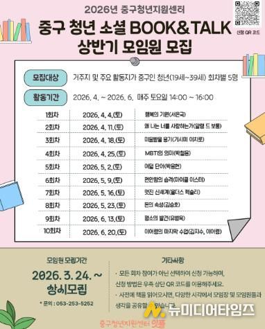 이번 프로그램은 매주 토요일 오후 2시부터 4시까지 진행되며, 청년들이 책을 매개로 서로의 생각과 경험을 나누고 다양한 관점을 공유할 수 있도록 마련됐다.