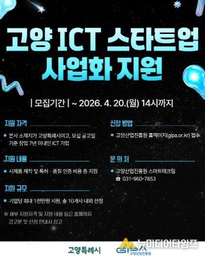 고양산업진흥원이 ‘2026년 고양 ICT 스타트업 사업화 지원사업’ 참여 기업을 모집한다.