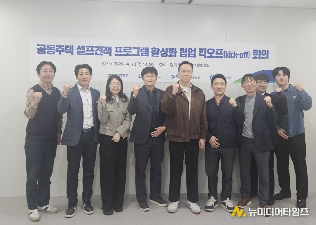 경기도는 4월 2일 경기도청에서 중앙공동주택관리지원센터(한국토지주택공사/LH), K-apt(한국부동산원), 경기주택도시공사(GH) 실무자들이 참석한 가운데 ‘공동주택 셀프견적 프로그램 활성화 협업 킥오프(Kick-off) 회의’를 개최했다.
