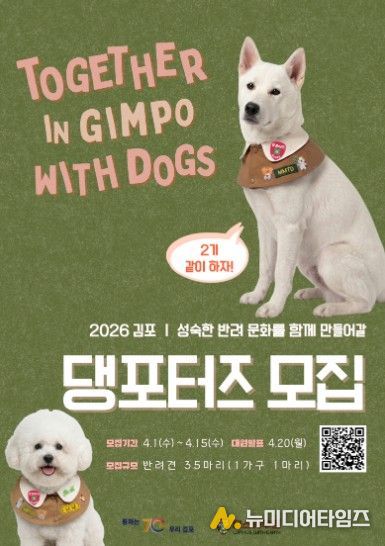 김포시는 올바르고 책임 있는 반려문화 확산을 이끌 ‘김포 댕포터즈’를 모집한다고 밝혔다.