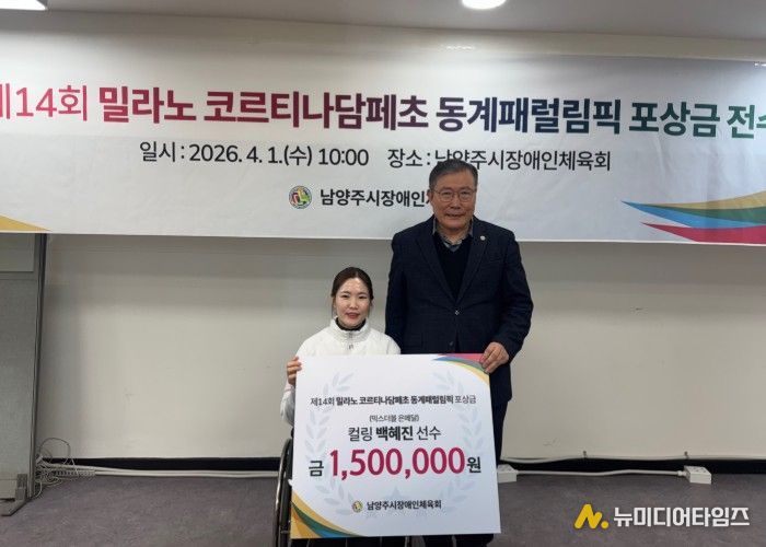 남양주시는 지난 1일 남양주시장애인체육회가 제14회 밀라노-코르티나담페초 동계패럴림픽 휠체어컬링 믹스더블 종목 은메달리스트 백혜진 선수에게 포상금을 전달하고 성과를 격려했다고 2일 밝혔다.