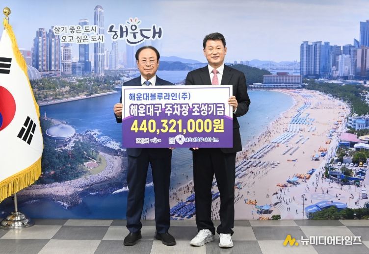 해운대블루라인파크(회장 이근철, 대표이사 배종진)가 3월 31일 해운대구(구청장 김성수)에 주차장 조성기금 4억 4천만 원을 기탁했다.