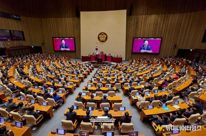 이어 "중동 전쟁으로 촉발된 위기를 슬기롭게 해결해 나가고 경제체질 개선의 기회로 삼아 우리 경제를 다시는 흔들리지 않는 반석 위에 올려놓아야 한다"며 "위기 극복의 성패는 속도에 달려 있다. 이번 예산안이 신속히 통과될 수 있도록 초당적인 협력을 부탁한다"고 말했다.