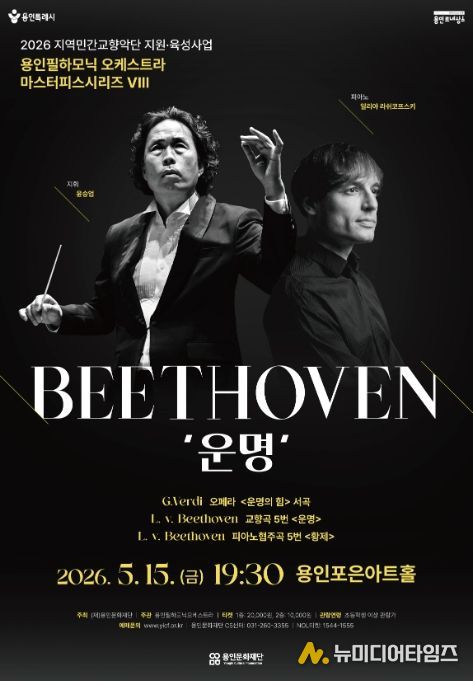 용인문화재단은 오는 5월 15일 오후 7시 30분 용인포은아트홀에서 ‘2026년 지역민간교향악단 지원·육성사업’의 첫 공연으로 용인필하모닉오케스트라의 기획공연 '마스터피스 시리즈 Ⅷ - 베토벤 ‘운명’'을 선보인다.