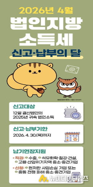 안성시는 12월 결산법인의 2025년 귀속 법인소득에 대한 ‘법인지방소득세 집중신고기간’을 4월 1일(수)부터 4월 30일(목)까지 운영한다고 밝혔다.