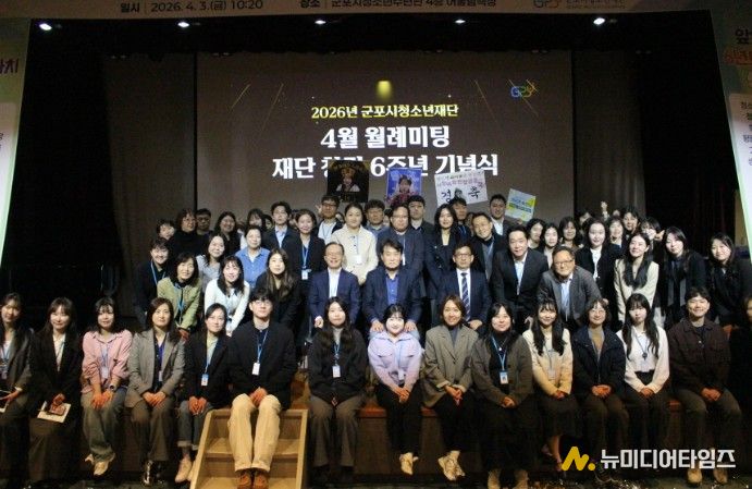 군포시청소년재단은 4월 3일 군포시청소년수련관 청소년어울림극장에서 4월 월례미팅을 열고, 창립 6주년을 맞아 미래도약 의지를 다지는 자리를 마련했다. 이날 행사에는 군포시청소년재단 임직원, 화용선차예문화연구소 등 80여 명이 참석했다.