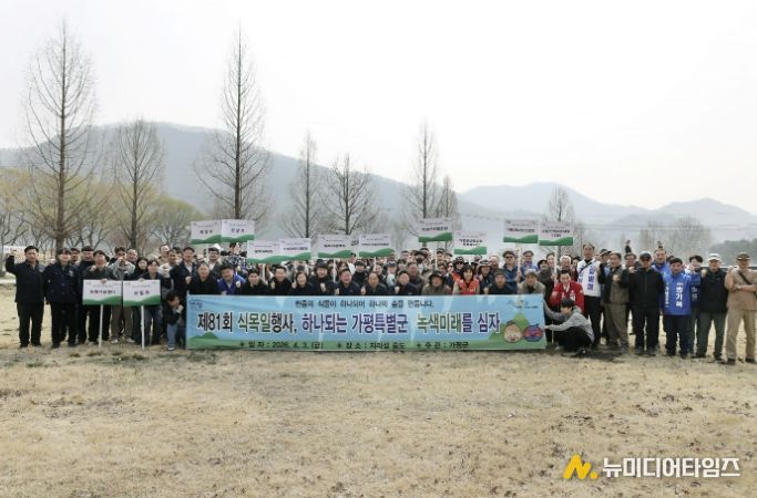 가평군은 지난 3일 자라섬 중도에서 서태원 가평군수와 김경수 가평군의회 의장, 군의원을 비롯한 주요 인사와 임업인, 봉사단, 공무원 등 150여 명이 참석한 가운데 제81회 식목일 기념 식재 행사를 개최했다.