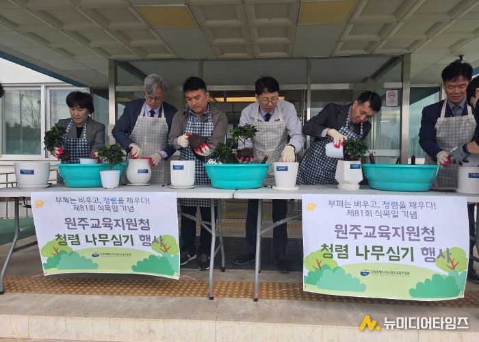 강원특별자치도원주교육지원청은 4월 6일 오전 9시 30분, 원주교육지원청 청사 현관 앞에서 제81회 식목일 기념 ‘청렴 나무심기’ 행사를 실시했다.