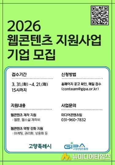 고양특례시와 고양산업진흥원이 오는 21일까지‘웹콘텐츠 지원사업’ 참여기업을 모집한다.