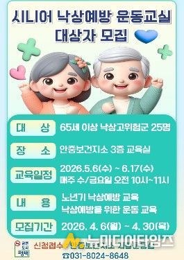 운동 전문 강사를 초빙하여 운영하는 ‘시니어 낙상예방 운동교실’은 △낙상 예방 교육(낙상 위험성 및 발생원인 교육, 낙상 발생 예방을 위한 환경 개선 및 개인 주의사항 등) △낙상 예방 운동(스트레칭, 코어 강화 운동, 균형 증진 운동, 소도구 운동 등)으로 구성된다.