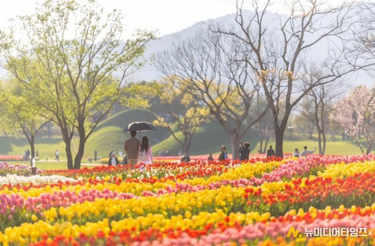 붉은빛·노란빛·분홍빛 등 형형색색의 튤립 물결은 4월 중순까지 최고 전성기를 유지할 것으로 전망된다.