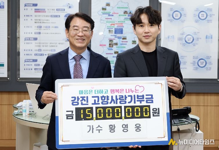 강진군은 가수 황영웅이 강진군을 향한 각별한 애정을 담아 고향사랑기부금 1,500만 원을 기탁하며 지역사회 나눔 실천에 앞장섰다고 7일 밝혔다.