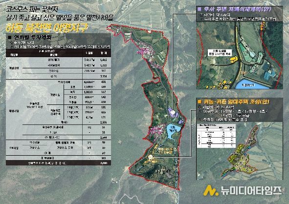 먼저 북천면 이명지구는 2023년 공모에 선정되어 총 60억 원 규모의 사업이 추진 중이다. 가나안농장 철거를 중심으로 귀농·귀촌 임대주택, 마을주차장, 마을숲 조성 등 재생사업까지 함께 진행되며 단순 정비를 넘어 ‘살아나는 공간’으로 변화하고 있다.