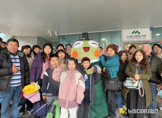 관광객들은 수성못 그림책도서관에서 수성구 캐릭터 ‘뚜비’의 환영을 받고, ‘뚜비 느린 우체통’을 활용한 그림엽서 그리기 체험에 참여했다.
