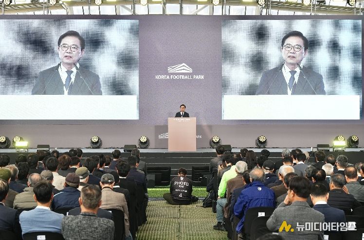 7일 천안시 서북구 입장면 가산리 일원에서는 김석필 천안시장 권한대행 부시장과 김태흠 충남도지사, 정몽규 대한축구협회 회장 등 400여 명이 참석한 가운데 코리아풋볼파크 개관식이 열렸다.
