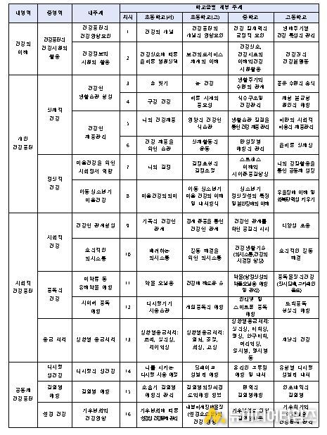 교육부는 관계부처 합동으로 수립(’23.10월)하여 추진 중인 『제2차 학생건강증진 기본계획(’24.~’28.)』의 후속으로, 학교에서 보건교육을 포함한 건강증진 교육에 활용할 수 있는 교사용 지도서를 개발·배포한다고 밝혔다.