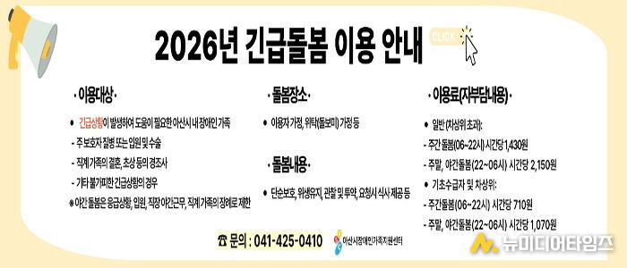 아산시는 장애인 가족의 돌봄 부담을 경감하고 삶의 질을 향상하기 위해 ‘중증장애인 긴급돌봄서비스’를 추진한다.