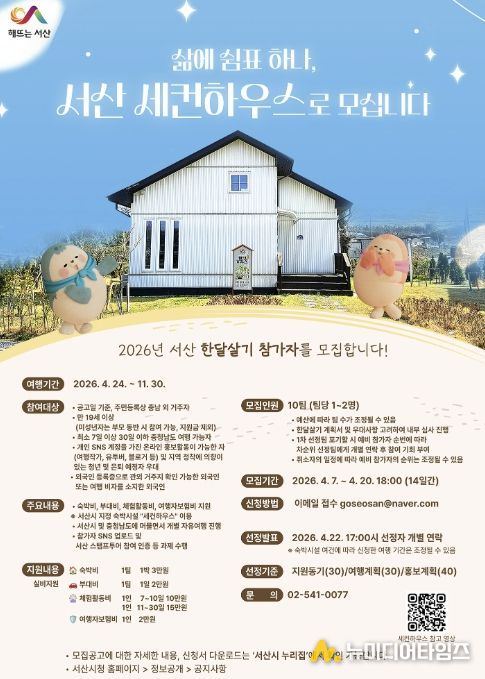 사업에 대한 자세한 사항은 서산시 누리집 공지사항에서 확인할 수 있다.