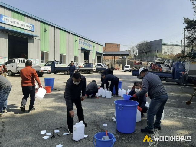 당진시는 당진시농촌지도자연합회가 농업분야 탄소중립 실천 및 농자재 구입비 절감을 위해 농촌지도자회원을 대상으로 아인산염 만들기 실습 교육을 실시하고 있다고 8일 밝혔다.