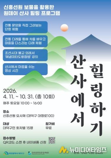 대덕문화관광재단 관계자는 “산사라는 특별한 공간에서 전통문화를 체험하며 몸과 마음을 쉬어갈 수 있도록 프로그램을 준비했다”며 “앞으로도 지역 문화유산을 활용한 치유형 문화 프로그램을 지속적으로 확대하겠다”고 말했다.