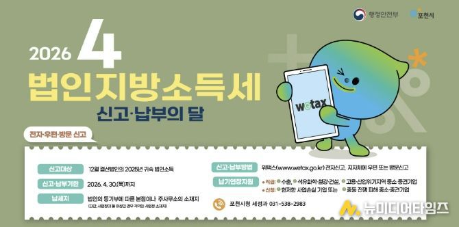 포천시는 관내 법인들이 불편 없이 신고·납부할 수 있도록 안내문 발송, 시청 홈페이지와 공식 사회관계망(SNS) 게시, 현수막 설치 등 다양한 방식으로 홍보를 진행할 계획이다.