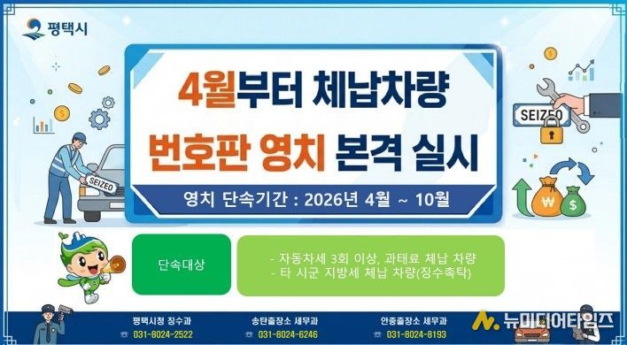 평택시 관계자는 “3월 예고 기간을 통해 충분한 납부 기회를 부여한 만큼, 4월부터는 강력한 현장 단속을 통해 조세 정의를 실현할 것”이라며 “번호판 영치로 인한 일상생활의 불편을 겪지 않도록 체납자들의 자발적인 납부를 당부드린다”라고 전했다.