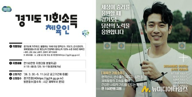 ‘체육인 기회소득’ 사업은 지역사회 발전에 기여하는 체육인에게 정당한 보상을 제공하고, 지속 가능한 활동 기반을 마련하기 위해 추진된다. 선정된 대상자에게는 1인당 연 150만 원의 지원금을 2회에 걸쳐 75만 원씩 분할 지급할 계획이다.