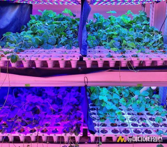 장치에는 수직농장 내 인공광원(LED)을 적용해 딸기 생육에 적합한 환경을 조성했다.