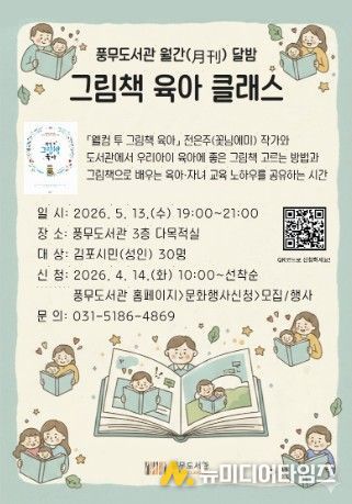 김포시 풍무도서관은 오는 5월 13일 오후 7시부터 야간 인문학 프로그램 ‘그림책 육아 클래스’를 운영한다.