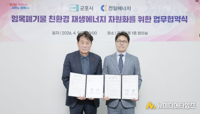 그동안 군포시는 도시숲·가로수 관리 과정에서 발생하는 산물을 임목폐기물로 처리해 왔으나, 이번 협약에 따라 해당 산물을 지정된 장소에 모아두면 업체가 이를 무상으로 수거해 ‘미이용 산림바이오매스’로 전환, 목재칩 등 발전용 연료로 활용한다.
