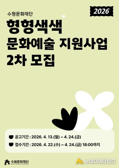 ‘형형색색 문화예술지원사업’은 수원 지역을 기반으로 활동하는 예술인과 문화예술단체의 창작활동을 지원하고, 지역 문화예술 생태계 활성화를 도모하기 위해 추진되는 사업이다. 수원문화재단은 이번 2차 공모를 통해 수원의 다양한 문화예술 프로젝트를 발굴하고 지역 예술 활동의 저변을 확대할 계획이다.