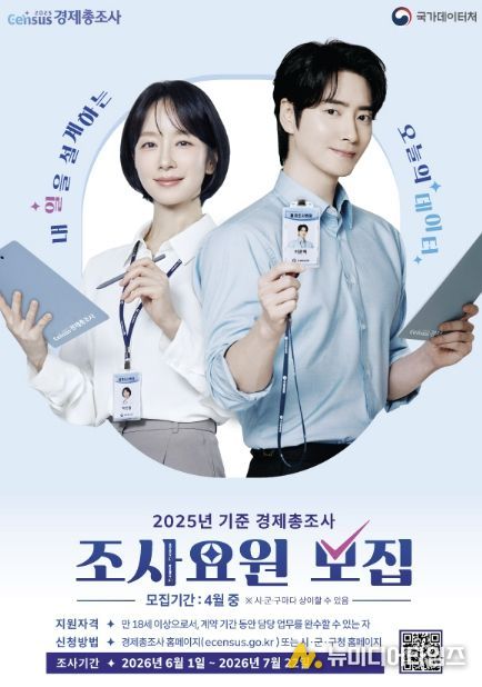 모집 인원은 △총관리자 1명 △조사관리자 4명 △조사지원 담당자 2명 △조사원 20명 등 총 27명이다. 지원 자격은 만 18세 이상으로, 조사 기간 업무에 전념할 수 있는 군민이라면 누구나 신청 가능하다.