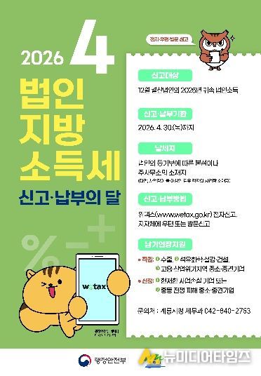 충남 계룡시는 오는 4월 30일까지 ‘2025년 귀속 법인지방소득세 집중 신고·납부 기간’을 운영한다고 밝혔다.