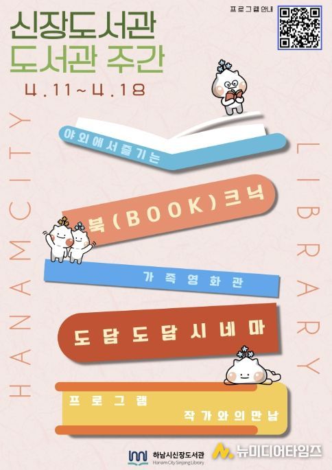 하남시신장도서관은 도서관의 날(4월 12일)과 도서관 주간(4월 11일~4월 18일)을 맞아 시민들이 일상 속에서 문화를 직접 체험할 수 있도록 아트북 전시, 북크닉, 영화 상영 등 참여형 프로그램을 확대 운영한다.