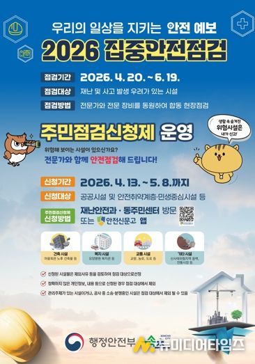 속초시는 2026년 집중안전점검 기간을 맞아 4월 13일부터 5월 8일까지 주민점검 신청제를 운영하며 신청을 받는다.