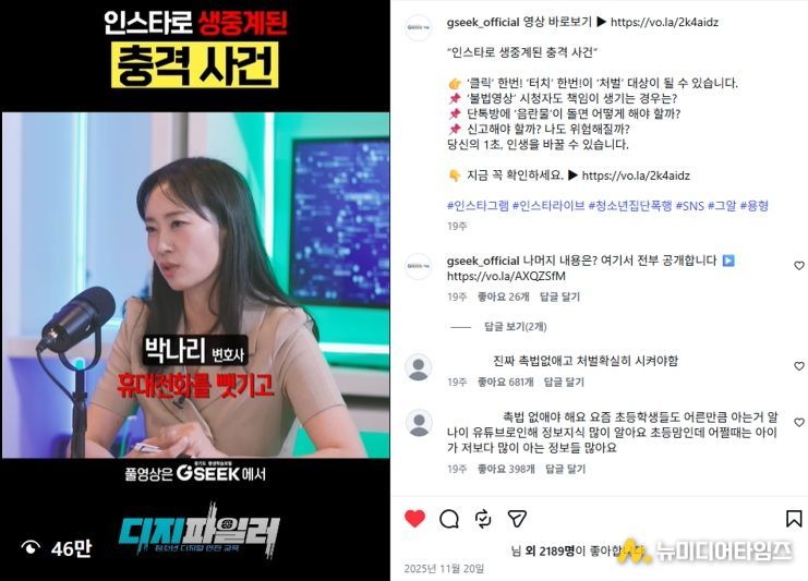 특히 인스타그램에서는 ‘인스타로 생중계된 충격사건’이 약 46만 회 조회되며 높은 관심을 끌었고, 유튜브에서도 ‘텔레그램 유저들 주목! 성범죄자에 안 낚이는 방법 공개’ 콘텐츠가 약 3만 회 조회되는 등 주요 채널별로 이용자 반응이 이어졌다. 지난해 게시된 숏폼 100편의 누적 조회수는 약 350만 회에 달한다.