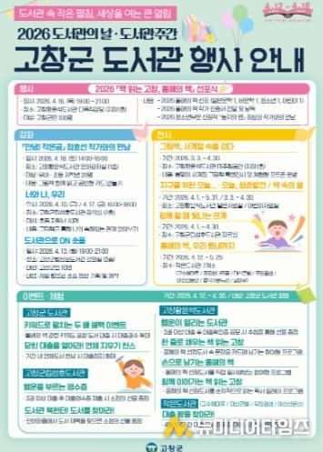고창군도서관이 ‘제62회 도서관주간(12~30일)’을 맞아 ‘2026 책 읽는 고창, 올해의 책 선포식’을 중심으로 군민과 함께 독서문화 확산에 나선다.